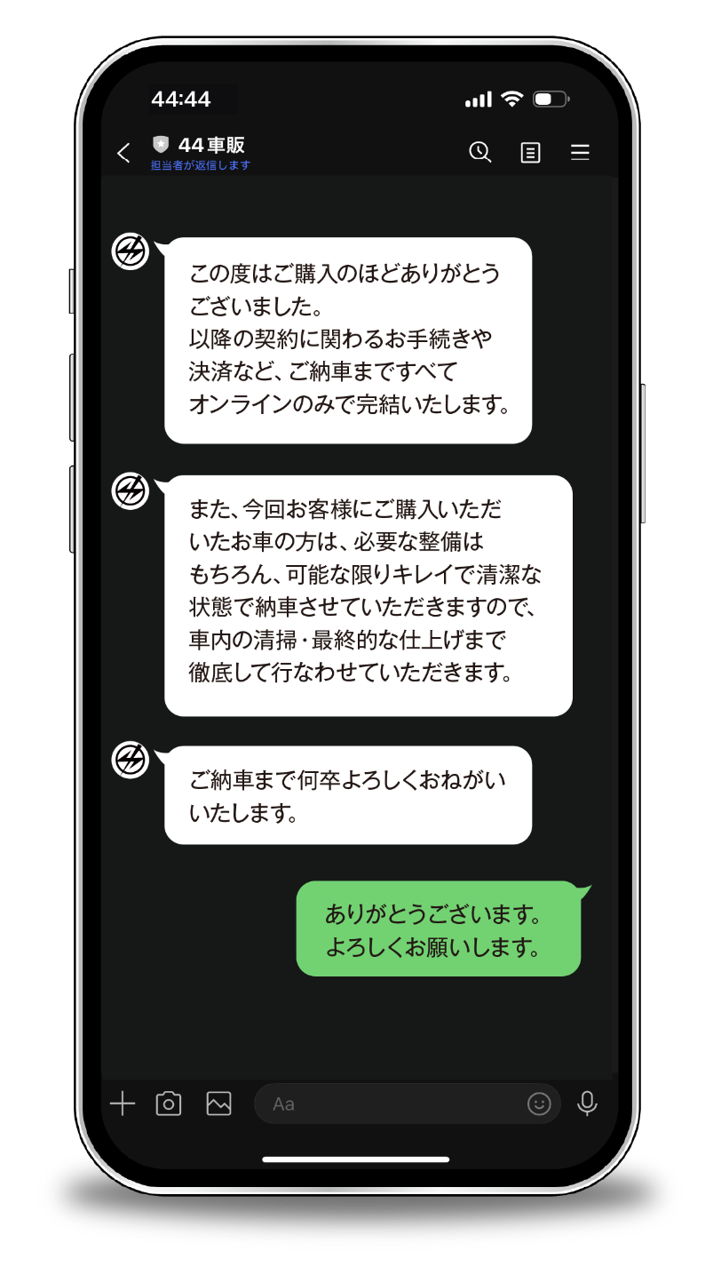 ご注文からご納車まで、すべてLINEのみで